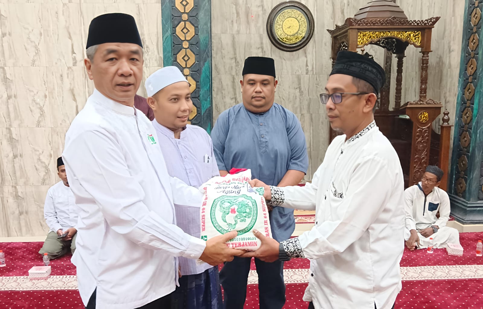 Acara ditutup dengan penyerahan 15 paket sembako secara simbolik oleh Sekdako Erwin Suheri Damanik kepada Ketua BKM Masjid Al-Hasanah, kemudian dilanjutkan dengan sholat Isya berjamaah. (Pewarta : H. Suhartoyo/Maradhona Ritonga).