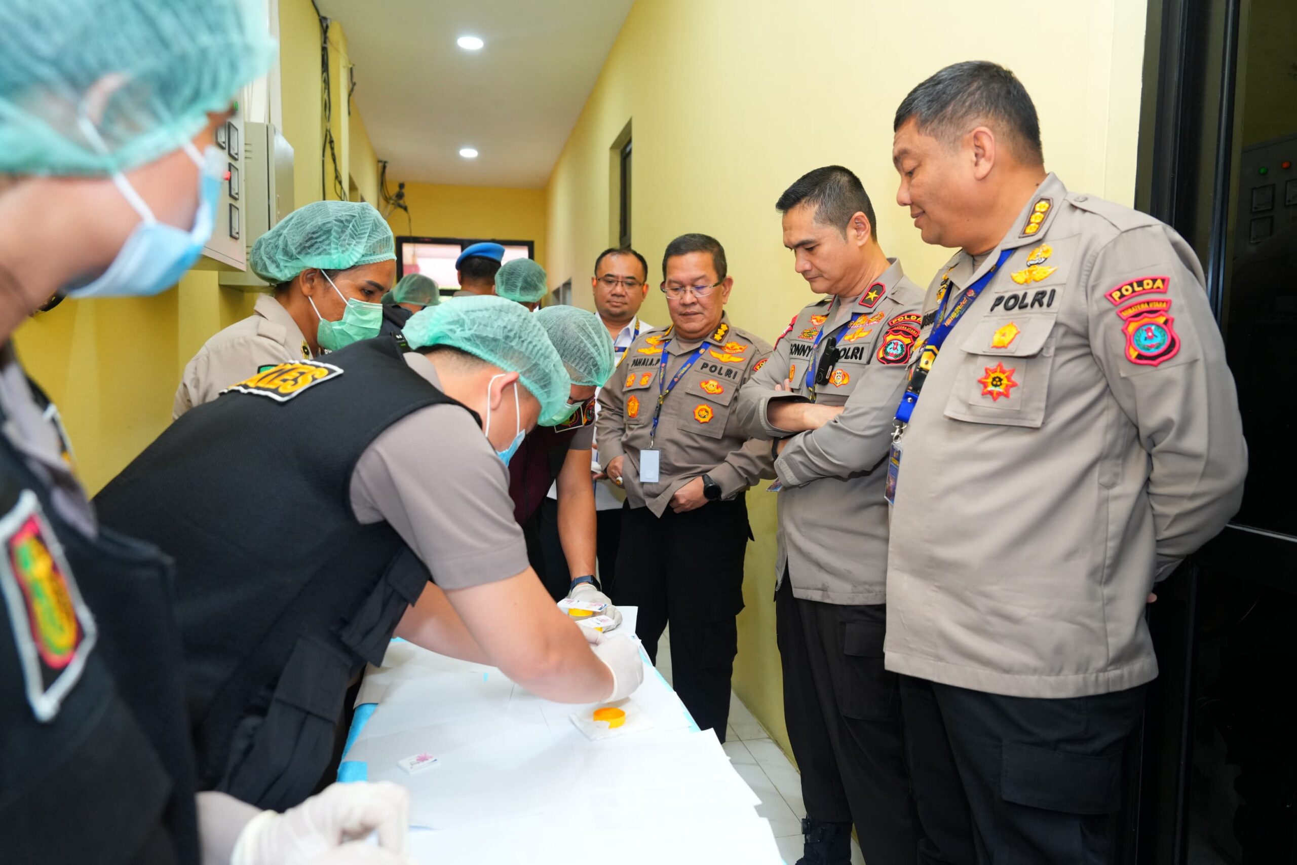 Kepala Kepolisian Daerah Sumatera Utara (Kapoldasu) Irjen Pol. Whisnu Hermawan Februanto, SIK, MH, memimpin langsung pelaksanaan tes urine terhadap jajaran Pejabat Utama (PJU) dan Kapolres se-Sumatera Utara, dalam rangkaian Rapat Pimpinan (Rapim) Tahun 2026 di Aula Tribrata Mapolda Sumut, Rabu (25/2/2026) sebagai tindak lanjut instruksi Kapolri, guna memastikan internal Polri bersih dari penyalahgunaan narkoba.