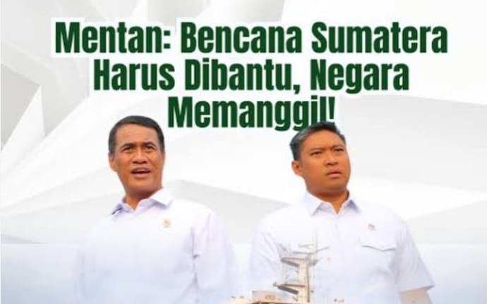 Sebelumnya, Menteri Pertanian sekaligus Kepala Badan Pangan Nasional Andi Amran Sulaiman, mengirim bantuan logistik hingga alat penjernih air ke Aceh, Sumatera Utara dan Sumatera Barat, menggunakan kapal perang TNI Angkatan Laut KRI Surabaya 591 untuk mempercepat penanganan pascabencana.