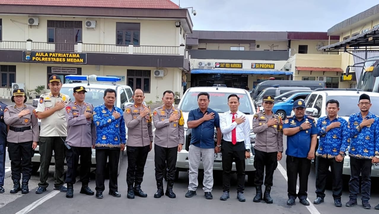 Pemerintah Kabupaten Deli Serdang memberikan bantuan tiga unit kendaraan operasional, kepada pihak Polrestabes Medan.