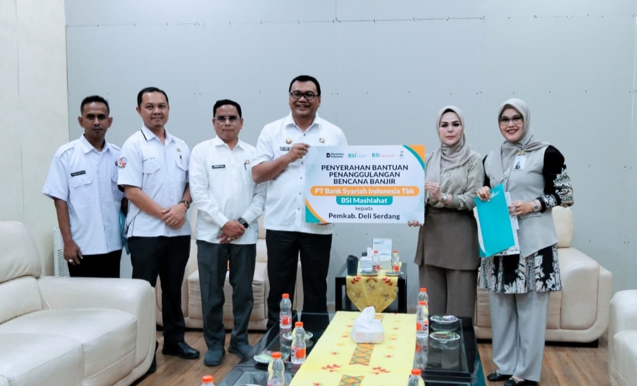 Bantuan BSI ini, diserahkan oleh Retail Transaksi Business Manager BSI Rolia Nella Elma Sahertian, bersama Priority Banking Manager BSI Cabang Lubukpakam Siti Aisyah Mogariana, kepada Bupati Deli Serdang dr. H. Asri Ludin Tambunan, di Kantor Bupati Deli Serdang, Rabu (24/12/2025).