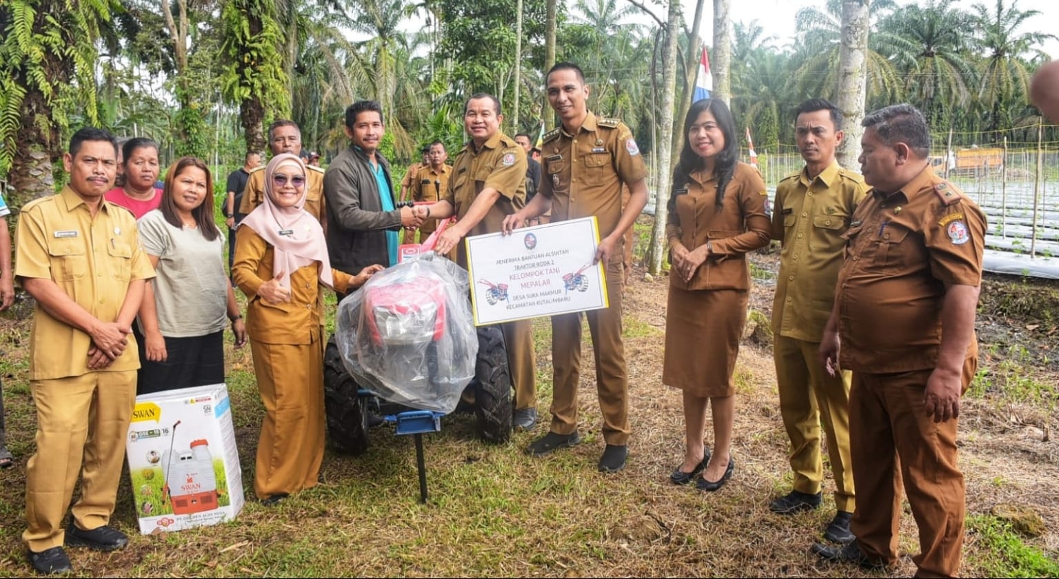 Kemudian, satu unit traktor roda dua, benih cabai merah, mulsa plastik dan pupuk organik kepada Poktan Mepalar, Desa Suka Makmur, benih sayuran kepada Poktan Hijau Lestari, Desa Jati Kesuma, bibit alpukat kepada Poktan Pembangunan, Desa Namo Batang, benih cabai merah, mulsa plastik dan pupuk organik kepada Poktan Sinar Jaya Desa Perpanden.