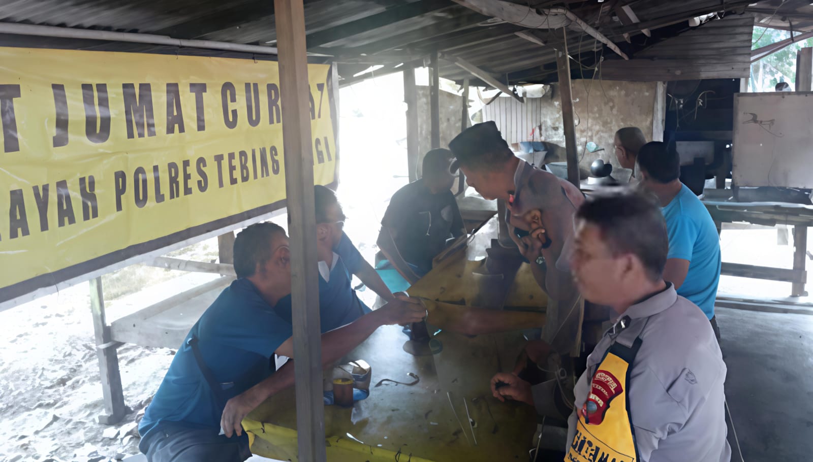 Wakapolsek Rambutan Iptu Rudianto Sinaga bersama personel Polsek Rambutan Polres Tebingtinggi, melaksanakan Jumat Curhat di warung Ucok Lingkungan 1 Kelurahan Karya Jaya, Kecamatan Rambutan, Kota Tebingtinggi, sekaligus menyampaikan himbauan kepada warga masyarakat.
