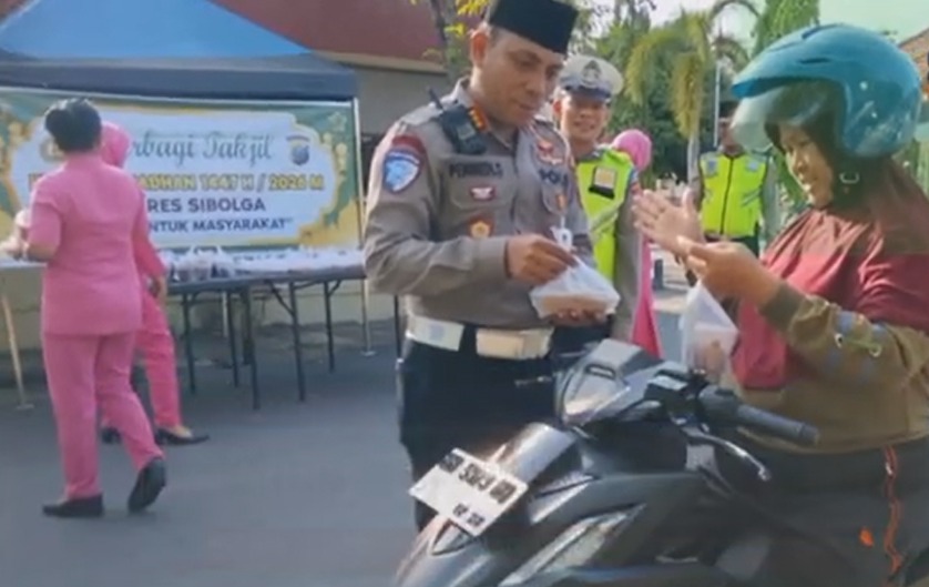 Dalam rangka menyemarakan Bulan Suci Ramadan 1447 H/2026 M, Satuan Lalulintas Polres Sibolga melaksanakan kegiatan bakti religi, dengan berbagi takjil kepada masyarakat Kota Sibolga. Kegiatan tersebut dilaksanakan pada Sabtu sore (28/02/2026), di Jalan Dr. FL Tobing, Kelurahan Kota Beringin, Kecamatan Sibolga Kota, tepatnya di Simpang 4 Polres Sibolga.