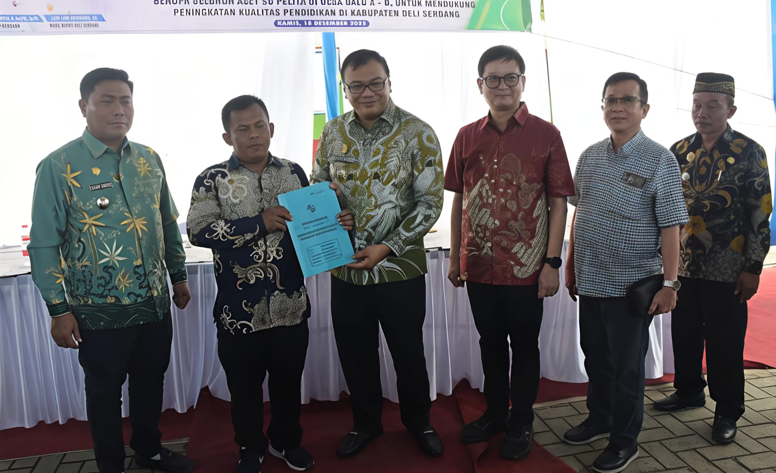 Bupati Deliserdang dr. H. Asri Ludin Tambunan menyerahkan bantuan Corporate Social Responsibility (CSR) dari PT Evergreen International Paper, berupa aset Sekolah Dasar (SD) Swasta Pelita kepada Yayasan Pelita Dalu di halaman SD Swasta Pelita di Desa Dalu X-B, Tanjungmorawa, Kamis (18/12/2025).