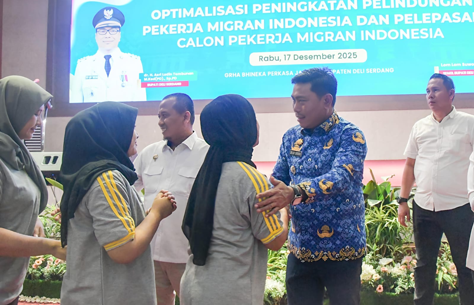 Wakil Bupati Lom Lom Suwondo, SS, melepas keberangkatan ke-26 CPMI tersebut, di Grha Bhineka Perkasa Jaya, Rabu (17/12/2025). Pada kesempatan itu, menegaskan bahwa Pemkab Deliserdang memiliki komitmen kuat, untuk memastikan seluruh Pekerja Migran Indonesia asal Deliserdang, mendapat perlindungan yang layak, mulai dari sebelum berangkat, selama bekerja, hingga kembali ke tanah air.